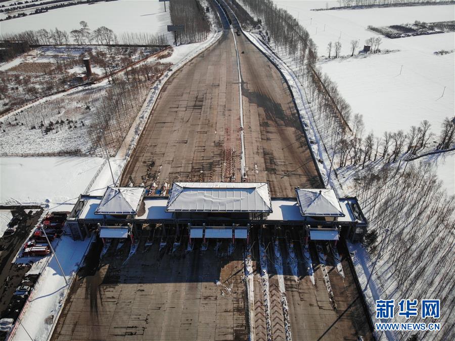 2月24日,哈牡高速公路哈爾濱收費(fèi)站重新開(kāi)放(無(wú)人機(jī)照片)。 新華社記者 王松 攝