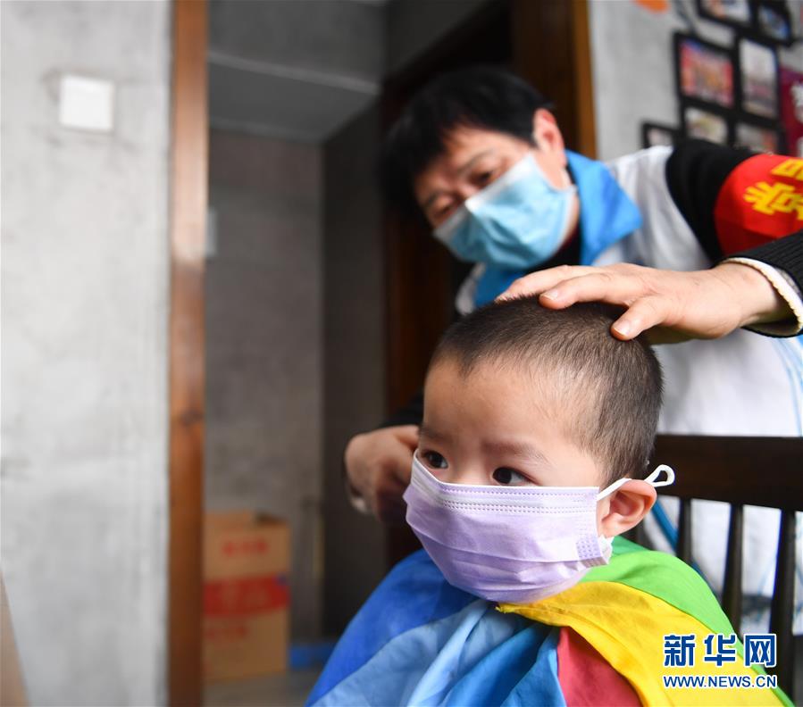 2月24日,鄒勤敏在南昌市青山湖區(qū)商苑社區(qū)服務(wù)中心為一名小朋友理發(fā)。
