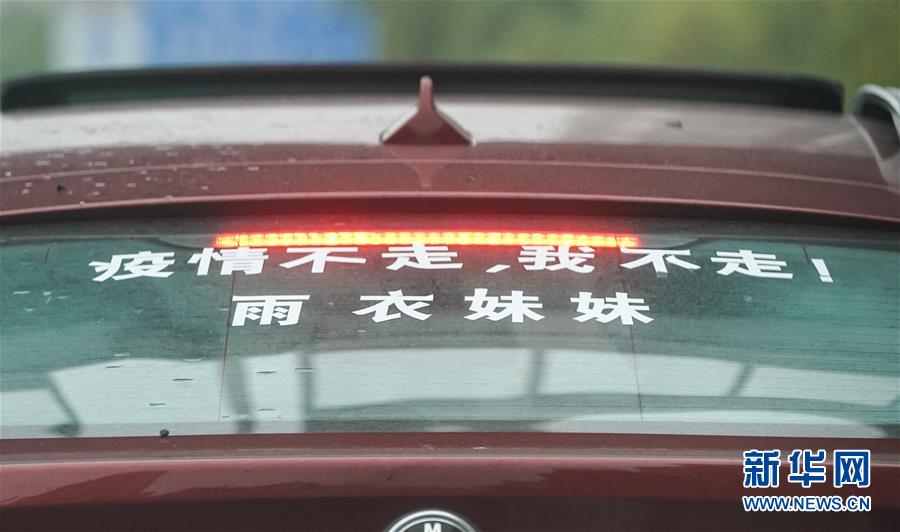 劉女士在車子后窗貼上自己的心聲(2月26日攝)。新華社記者程敏攝