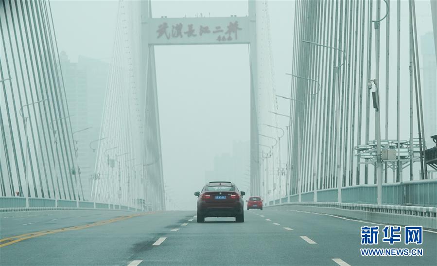2月26日,劉女士開車送餐經(jīng)過武漢長(zhǎng)江二橋。新華社記者程敏攝