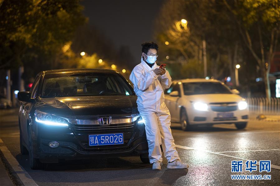 2月21日,王永朋在路邊等待,準(zhǔn)備接單。這個(gè)春節(jié)王永朋沒回老家甘肅安陽(yáng),他報(bào)名擔(dān)任高德醫(yī)護(hù)專車志愿者,開著年前剛買的新車,免費(fèi)接送醫(yī)護(hù)人員上下班。因?yàn)樽≡谖錆h新洲區(qū),距離江漢、武昌等老城區(qū)有相當(dāng)一段車程,他每天早上6點(diǎn)就起床出車,晚上十一二點(diǎn)才能回家休息,一天接送幾十位醫(yī)護(hù)人員上下班。每次到達(dá)目的地,醫(yī)生和護(hù)士下車后做的第一件事,總是向他致謝,還有不少人硬要塞錢給他,穿著防護(hù)衣、戴著口罩和護(hù)目鏡的王永朋,每次都微笑著退回了。新華社記者熊琦攝