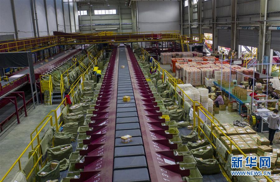 2月27日,在秀山(武陵)現(xiàn)代物流園區(qū)的電商云倉內(nèi),自動化的分揀設(shè)備在快速分揀發(fā)往全國各地的包裹(無人機照片)。地處重慶市秀山縣的秀山(武陵)現(xiàn)代物流園區(qū),是渝湘黔三省市交界地區(qū)的區(qū)域性物流中心。重慶市秀山縣在做好新冠肺炎疫情防控工作前提下,當?shù)卣e極幫助電商、物流企業(yè)解決招工、運輸、銷售等方面的實際問題,推動秀山(武陵)現(xiàn)代物流園區(qū)快速進入全面復工復產(chǎn)階段。據(jù)介紹,隨著物流園區(qū)的電商和物流企業(yè)全面復工復產(chǎn),既滿足當?shù)厝罕姷奈镔Y供應,又幫助當?shù)剞r(nóng)產(chǎn)品通過電商平臺實現(xiàn)快速銷售。新華社記者劉潺攝