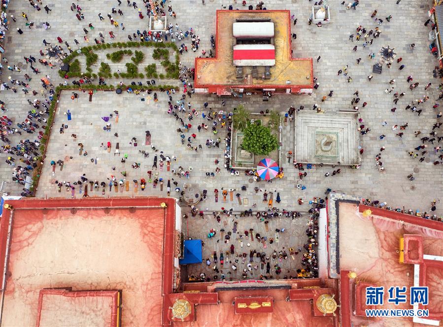 8月10日無(wú)人機(jī)拍攝的布達(dá)拉宮廣場(chǎng)一景。新華社記者王益亮攝