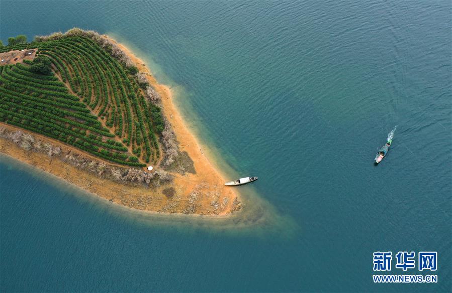 這是淳安縣里商鄉(xiāng)村坑村一片茶園(3月2日攝,無(wú)人機(jī)照片)。當(dāng)日,浙江省淳安縣春茶全面開(kāi)采,千島湖上星星點(diǎn)點(diǎn)的“島嶼茶園”浮在碧波之上,如夢(mèng)似幻。新華社記者翁忻旸攝