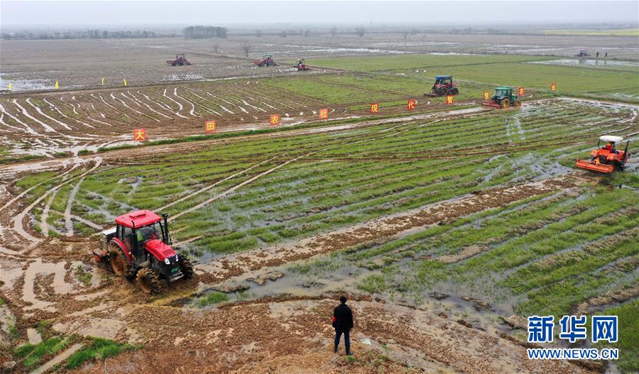 江西省南昌市南昌縣蔣巷鎮(zhèn)農(nóng)民駕駛拖拉機(jī)進(jìn)行春耕翻地作業(yè)(無(wú)人機(jī)照片,2月28日攝)。新華社記者 彭昭之 攝