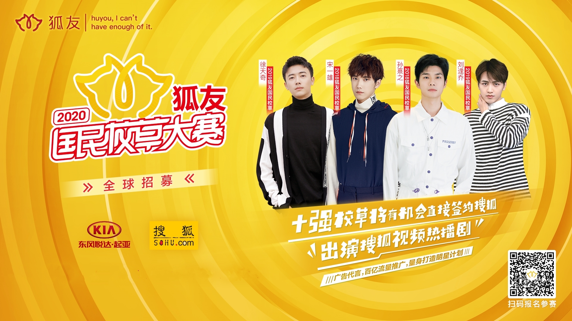 剩下的就交給“2020狐友國(guó)民校草大賽”吧!明星導(dǎo)師評(píng)委加持、百億流量資源曝光、大牌商業(yè)活動(dòng)扶持、各路金主代言選拔、搜狐自制劇“男一、男二”……超豪華套餐陸續(xù)推出,助推選手直通演藝圈金字塔頂。