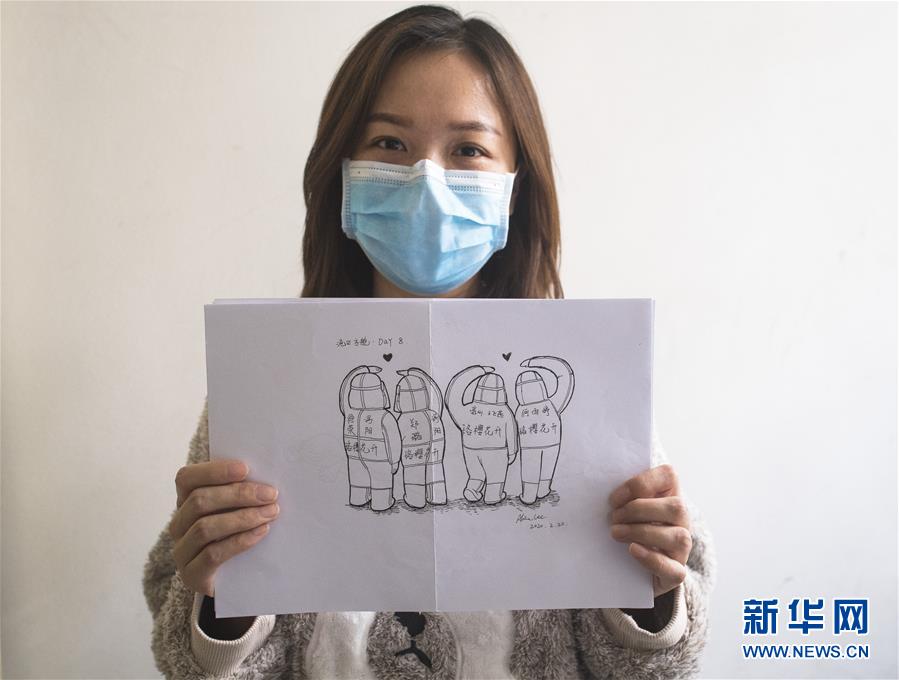 3月13日,黎婧展示自己在疫情期間創(chuàng)作的插畫。 3月12日,插畫師黎婧和84位病友離開自己居住的武漢軟件工程職業(yè)學(xué)院康復(fù)驛站,回到自己家中。他們都是治愈出院的新冠病毒肺炎患者,已經(jīng)在武漢軟件工程職業(yè)學(xué)院康復(fù)驛站進行了14天醫(yī)學(xué)觀察,達到醫(yī)學(xué)標(biāo)準(zhǔn),成功解除隔離。他們由專車運送至所屬社區(qū)附近的集散點后,在社區(qū)工作人員的陪同下回家。 新華社記者 肖藝九 攝