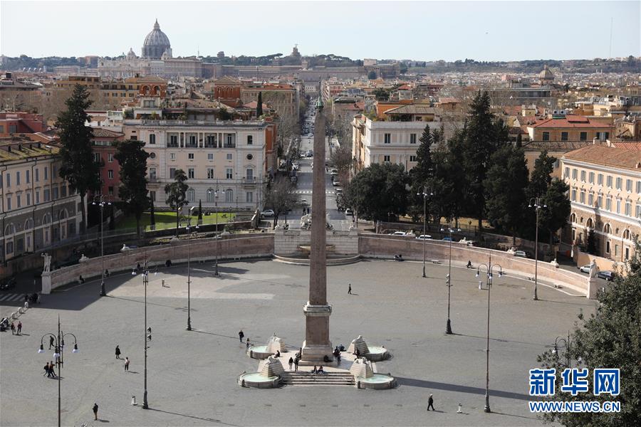 3月10日,在意大利首都羅馬,人民廣場(chǎng)上游人稀少。新華社記者程婷婷攝