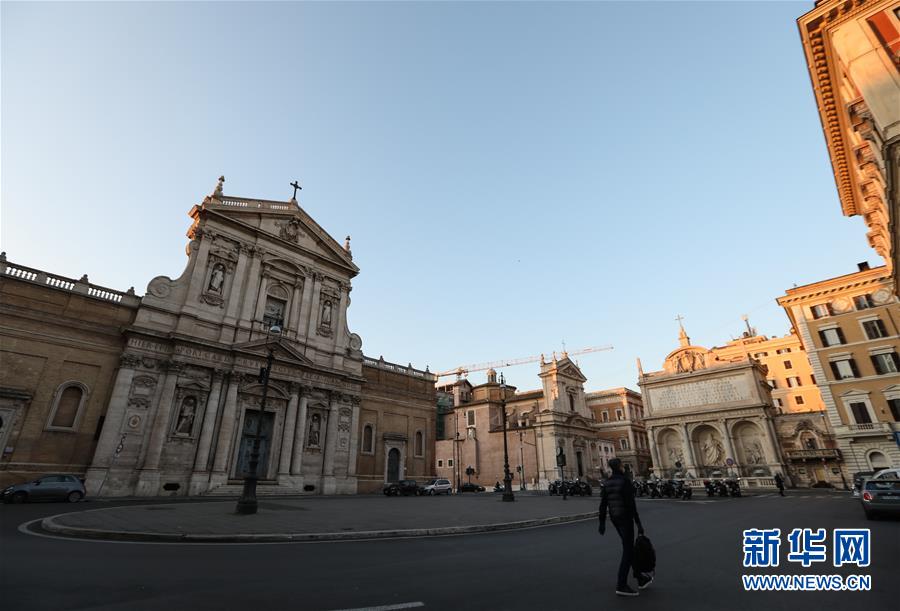 3月16日,意大利首都羅馬的教堂外行人寥寥。新華社記者程婷婷攝