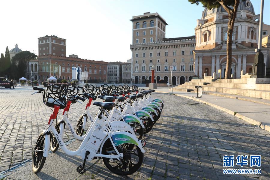 這是3月16日在意大利首都羅馬拍攝的共享單車。新華社記者程婷婷攝