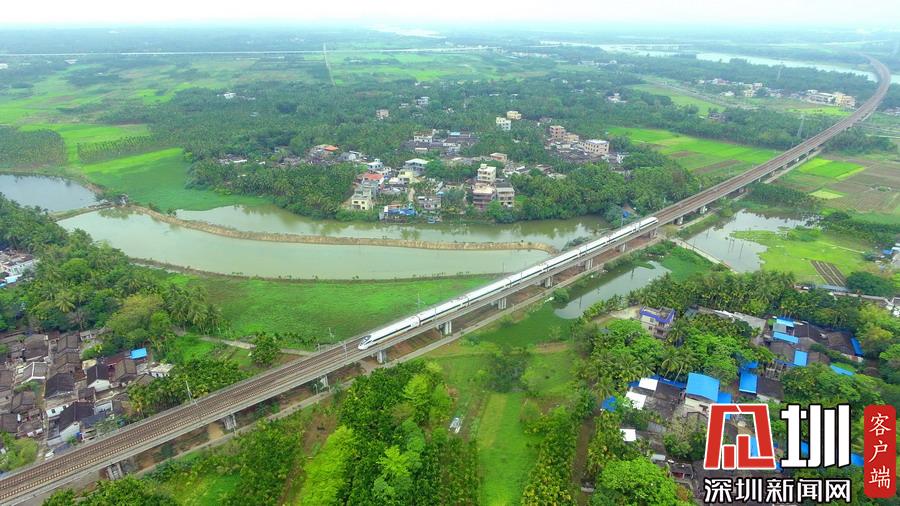 2020年3月17日,海南環(huán)島鐵路一列動車從春光明媚的瓊海城區(qū)經(jīng)過。