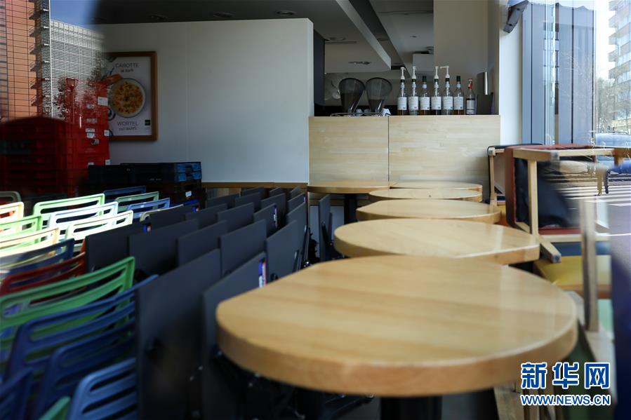 這是3月18日在比利時布魯塞爾拍攝的一家關(guān)閉的咖啡館。 新華社記者 張鋮 攝