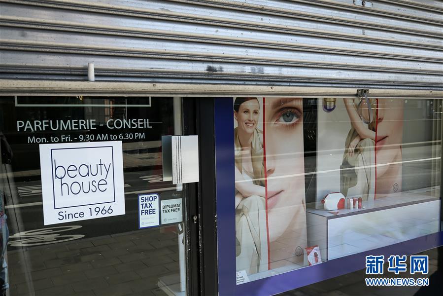 這是3月18日在比利時布魯塞爾拍攝的一家關(guān)閉的化妝品商店。 新華社記者 張鋮 攝