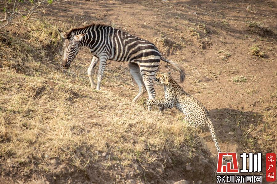 獵豹仿佛和斑馬成為了好友,緊緊跟隨這個(gè)新伙伴一起行走,最終斑馬將“屁股”對(duì)準(zhǔn)了獵豹的頭部,而獵豹似乎在聞味道。