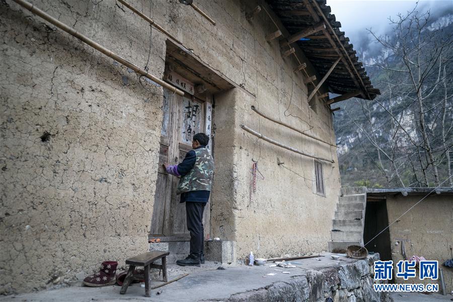 云南省永善縣大興鎮(zhèn)駱丘村村民晏付高關(guān)上老屋的大門準(zhǔn)備離開(3月14日攝)。 新華社記者 江文耀 攝