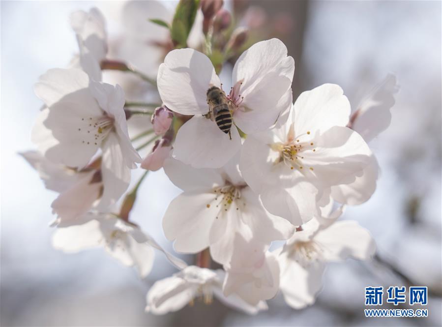 在武漢市武昌區(qū)被網(wǎng)友稱為“武漢最美停車場”的湖北日報(bào)停車場,櫻花開放(3月19日攝)。  新華社記者 才揚(yáng) 攝