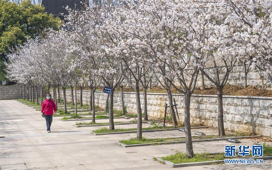 3月19日,在武漢市武昌區(qū)被網(wǎng)友稱為“武漢最美停車場”的湖北日報(bào)停車場,一名工作人員從櫻花樹邊經(jīng)過。  新華社記者 才揚(yáng) 攝