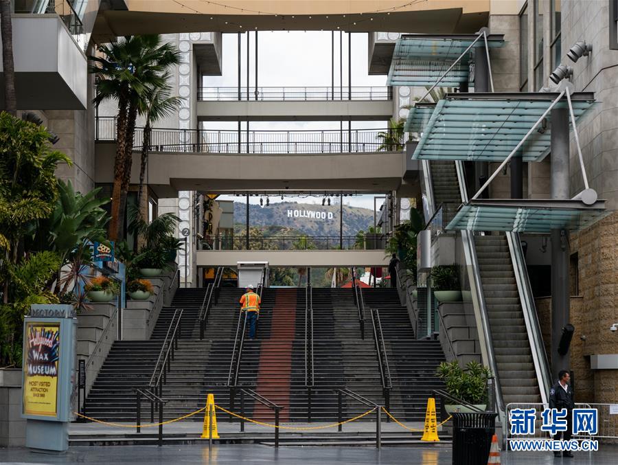 3月20日,在美國加利福尼亞州洛杉磯,星光大道上的一家商場停止?fàn)I業(yè)。 新華社發(fā)(錢衛(wèi)忠攝)