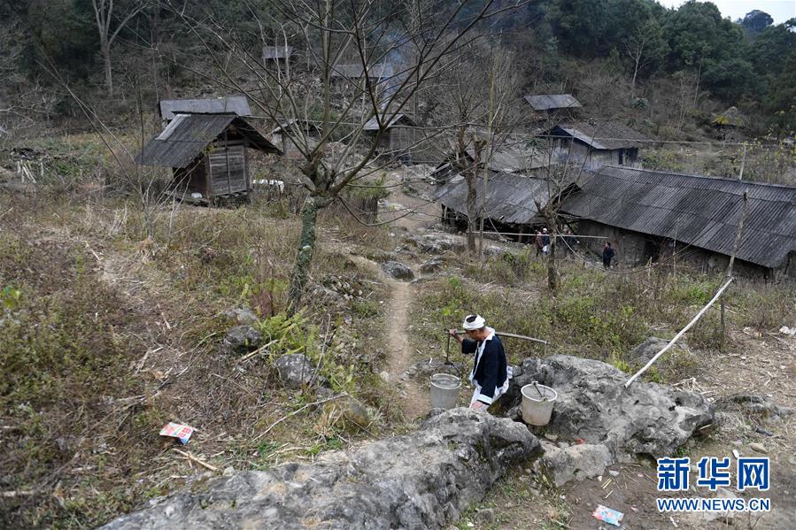 廣西南丹縣里湖瑤族鄉(xiāng),村民從水柜挑水回家(2018年1月12日攝)。廣西有近一半貧困人口生活在石漠化地區(qū),涉及數(shù)十個縣區(qū)。這里也是廣西飲水保障程度最低的地區(qū),解決貧困人口飲水問題是廣西脫貧攻堅戰(zhàn)“硬仗中的硬仗”?!笆濉币詠恚瑥V西加快實施農(nóng)村飲水安全鞏固提升工程。因地制宜,采取新建、擴(kuò)建及管網(wǎng)延伸等多種措施,補(bǔ)齊貧困地區(qū)水利薄弱短板,進(jìn)一步提升石漠化地區(qū)群眾飲水安全保障水平,助推脫貧攻堅。新華社記者周華攝