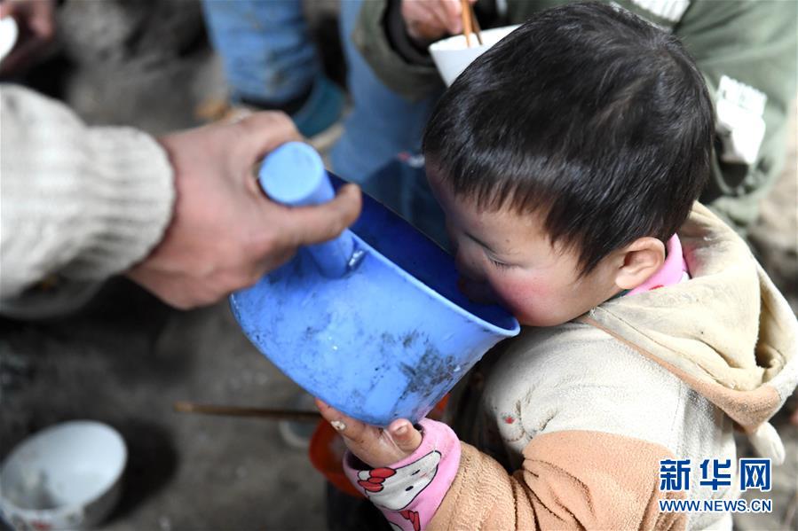 廣西南丹縣里湖瑤族鄉(xiāng),村民給孩子喂水(2018年1月12日攝)。廣西有近一半貧困人口生活在石漠化地區(qū),涉及數十個縣區(qū)。這里也是廣西飲水保障程度最低的地區(qū),解決貧困人口飲水問題是廣西脫貧攻堅戰(zhàn)“硬仗中的硬仗”?!笆濉币詠?,廣西加快實施農村飲水安全鞏固提升工程。因地制宜,采取新建、擴建及管網延伸等多種措施,補齊貧困地區(qū)水利薄弱短板,進一步提升石漠化地區(qū)群眾飲水安全保障水平,助推脫貧攻堅。新華社記者周華攝