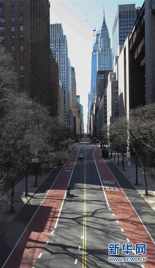 3月21日,在美國紐約,以往繁忙的街道上車輛寥寥。美國紐約州、伊利諾伊州、康涅狄格州20日發(fā)布針對本州居民的“居家令”,以遏制新冠病毒傳播。這些“居家令”涵蓋紐約、洛杉磯、芝加哥等大城市,影響數(shù)千萬人。白宮20日發(fā)表聲明說,總統(tǒng)特朗普已宣布紐約州出現(xiàn)“重大災(zāi)難”,命令聯(lián)邦政府支援該州抗擊新冠肺炎疫情。新華社記者王迎攝