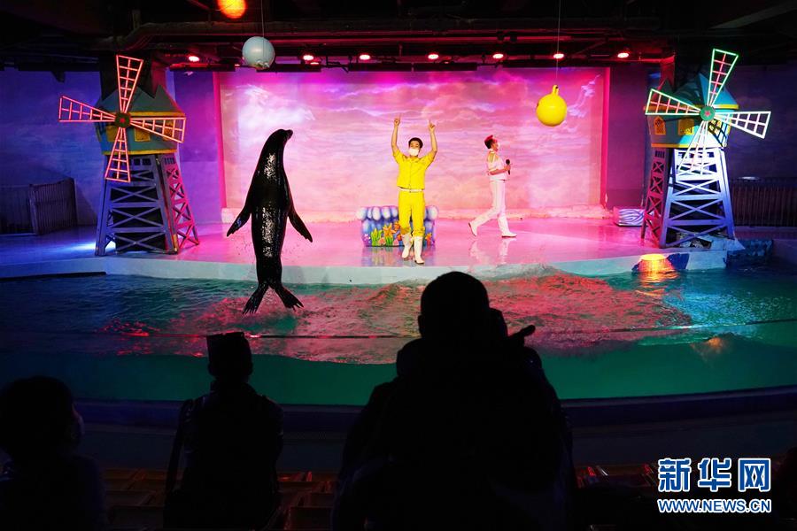 3月23日,游客在哈爾濱極地館觀看海獅表演。當(dāng)日,哈爾濱極地館恢復(fù)營業(yè)。目前,極地館日接待人數(shù)不超過400人,園區(qū)采取分時段、間隔性辦法安排游客有序入園。游客實(shí)名預(yù)訂門票,入園要配合測溫、佩戴口罩、掃描“龍江健康碼”,刷身份證入館。新華社記者王建威攝