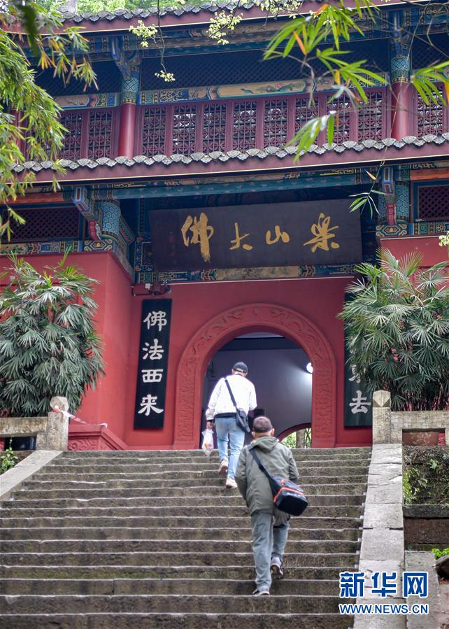 3月23日,游客在樂山大佛景區(qū)內(nèi)游覽。新華社記者張超群攝