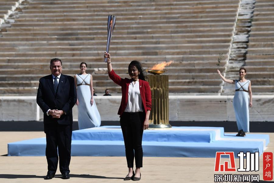 2020年3月18日,2020年?yáng)|京奧運(yùn)會(huì)火炬交接儀式在希臘雅典帕納辛奈科體育場(chǎng)舉行。
