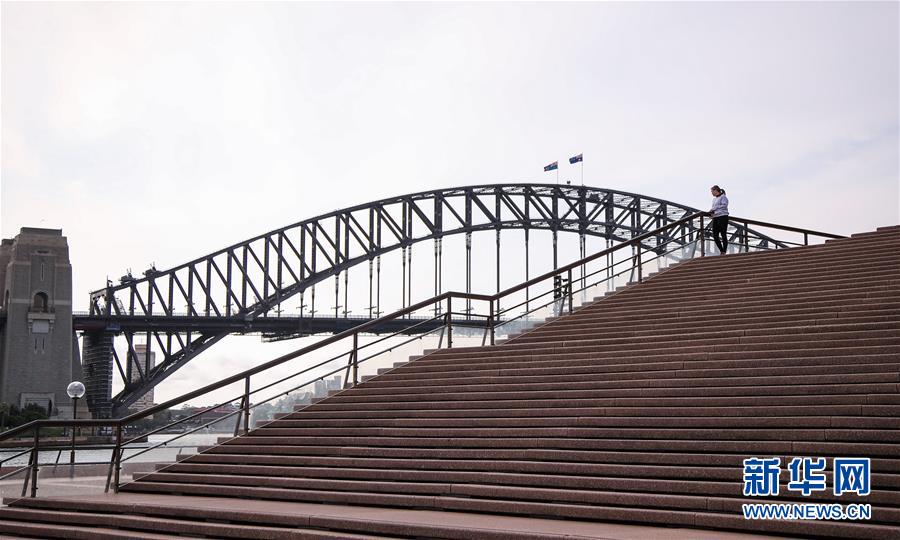 3月24日,一名游客站在澳大利亞悉尼海港大橋附近。 新華社記者 白雪飛 攝