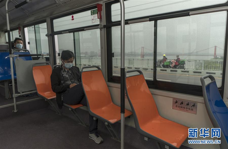 3月25日,61路公交車行駛在武漢長江大橋上。新華社記者費茂華攝