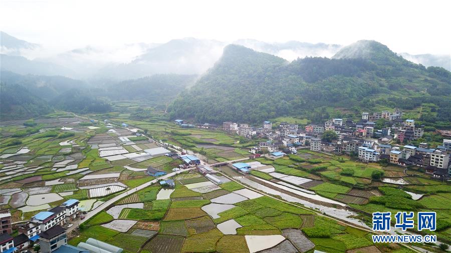 當(dāng)日,在貴州省黔東南苗族侗族自治州,一場春雨過后,村莊、山川、田野在薄霧中若隱若現(xiàn),美若畫卷。
