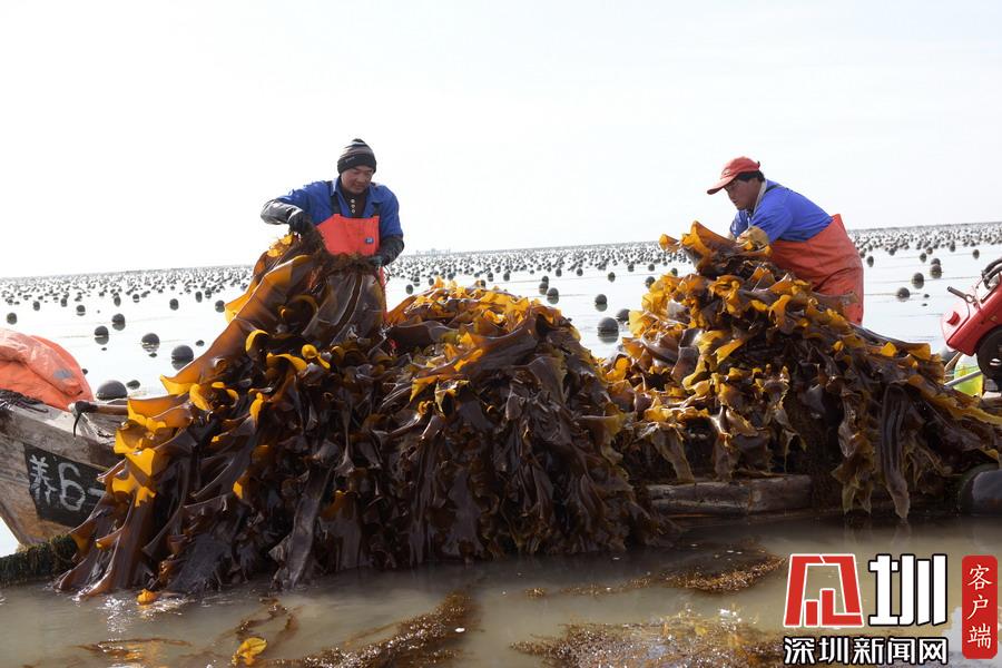 場面壯觀!山東威海收割海帶