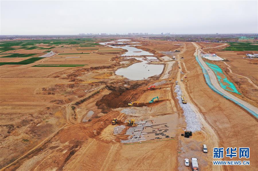 這是3月26日拍攝的雄安新區(qū)南拒馬河防洪治理工程(容城段)施工現(xiàn)場(無人機(jī)照片)。新華社記者楊世堯攝
