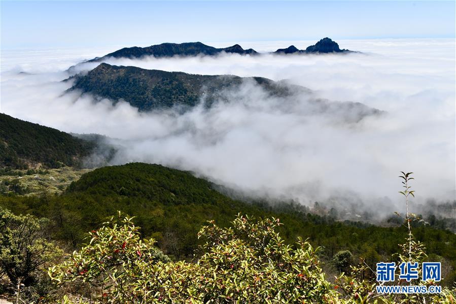 站在武夷山國家公園最高峰黃崗山遠望云霧繚繞的群峰(4月1日攝)。 新華社記者 姜克紅 攝