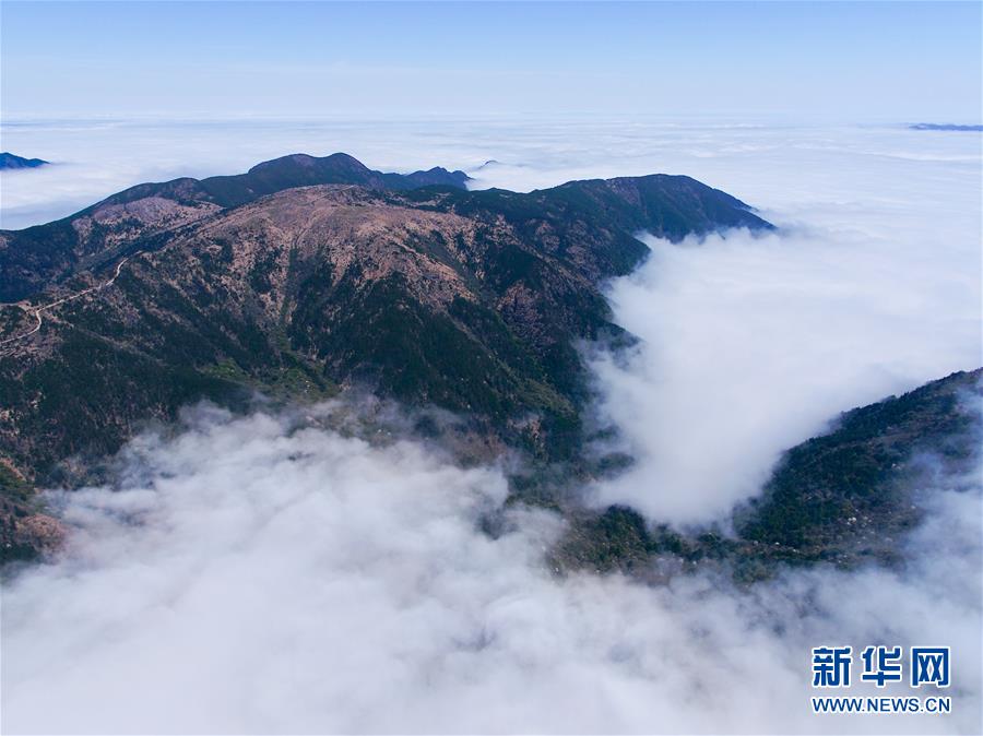 武夷山國家公園最高峰黃崗山云霧繚繞(4月1日攝,無人機照片)。 新華社記者 姜克紅 攝