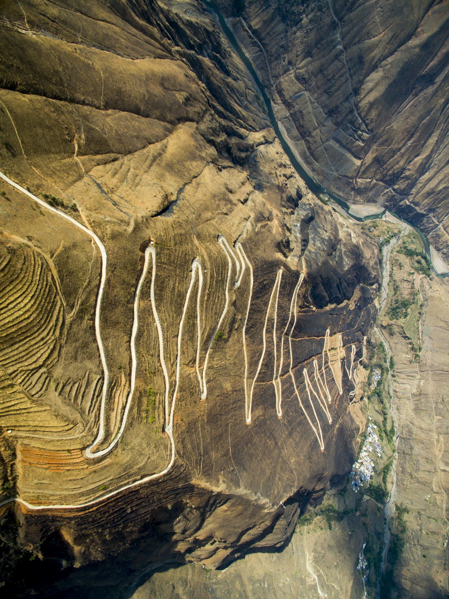這是“怒江72拐”,該處位于西藏自治區(qū)昌都市八宿縣境內(nèi),是川藏線上一段艱險(xiǎn)與美景并存的山路(10月23日無人機(jī)拍攝)。全長(zhǎng)2000多公里的川藏公路,從成都開始,一路向西到終點(diǎn)拉薩,在橫斷山脈、喜馬拉雅山脈和念青唐古拉山脈間蜿蜒盤旋,因海拔落差大,彎道眾多,形成天路奇觀。川藏公路1954年12月25日通車,65年來,國(guó)家對(duì)川藏公路進(jìn)行了大規(guī)模改造升級(jí),建設(shè)了眾多橋梁和隧道,行車條件得到明顯改善。新華社記者江宏景攝