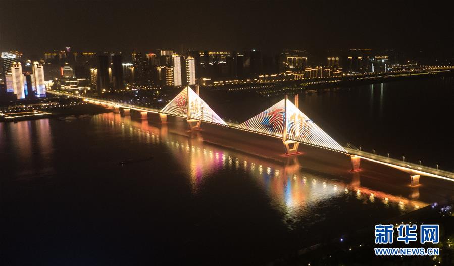 4月8日零時(shí)起,武漢市正式解除離漢離鄂通道管控措施,全市景觀(guān)照明開(kāi)啟(無(wú)人機(jī)照片)。新華社記者程敏攝