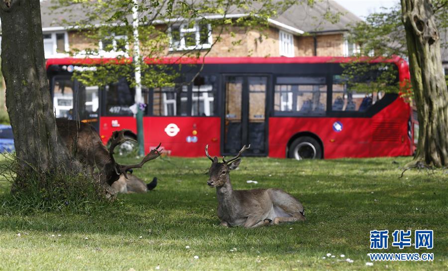 4月8日,在英國倫敦東部一個(gè)居民區(qū),附近公園里的鹿在草坪上休息。隨著新冠疫情在英國的擴(kuò)散,政府要求人們減少不必要的外出。倫敦東部一個(gè)居民區(qū)附近公園里原來散養(yǎng)的鹿紛紛從公園走出來,或吃草或接受附近居民的喂食,成為特殊時(shí)期居民區(qū)里的新“客人”。新華社記者韓巖攝