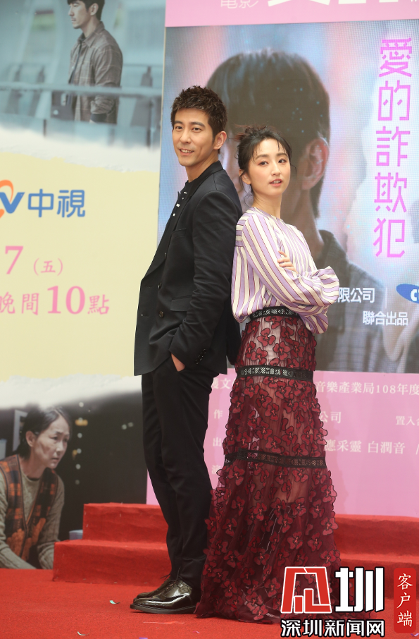 2020年4月9日,臺北,明星出席電影《愛的詐欺犯》記者會。