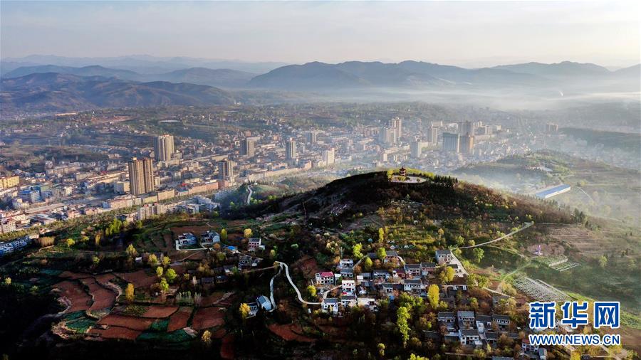 4月13日清晨時分拍攝的洛南縣城(無人機照片)。新華社記者陶明攝