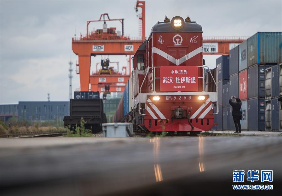 3月28日,開往德國杜伊斯堡的中歐(武漢)班列從中鐵聯(lián)集武漢中心站駛出。3月28日上午10點(diǎn),中歐班列(武漢)X8015/6次運(yùn)載50只集裝箱從中鐵聯(lián)集武漢中心站始發(fā)。班列將從阿拉山口出境,預(yù)計(jì)15天后抵達(dá)德國杜伊斯堡。這是自疫情防控以來,從武漢開出的首趟中歐班列,標(biāo)志著中歐班列(武漢)恢復(fù)常態(tài)化運(yùn)營。新華社記者肖藝九攝