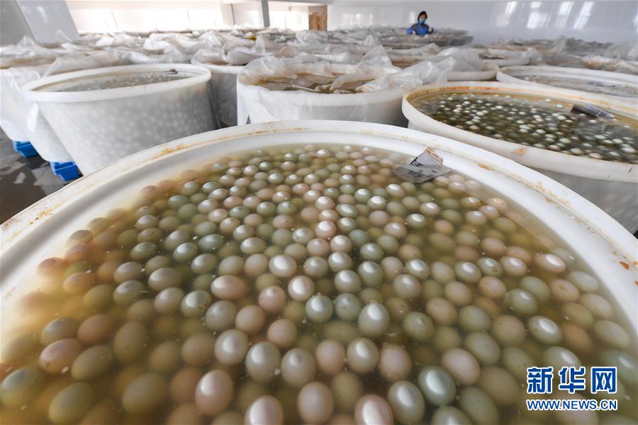 在江蘇高郵鴨集團生產(chǎn)車間,腌制好的鴨蛋準(zhǔn)備進行清洗包裝作業(yè)(4月15日攝)?!案哙]鴨蛋”是江蘇高郵的特色農(nóng)業(yè)名片。近年來,當(dāng)?shù)卦诹挤N繁育、生態(tài)養(yǎng)殖、產(chǎn)品加工等方面加大力度,推動高郵鴨蛋品牌化建設(shè),讓小鴨蛋成為帶動農(nóng)戶致富的大產(chǎn)業(yè)。2019年,高郵市共計生產(chǎn)熟制鴨蛋產(chǎn)品近11.2億枚,年產(chǎn)值近17.68億元。新華社記者李博攝