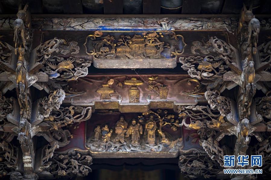 位于石屏縣異龍鎮(zhèn)符家營村一戶老屋中“修舊如舊”的房梁(8月8日攝)。新華社記者江文耀攝