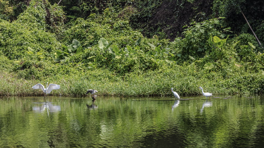 4月15日,攝于南山區(qū)華僑城天鵝堡附近。這是深圳拍鷺鳥的其中一個好去處。左一白鷺捕到食物,后方兩只白鷺追趕。徐捷攝