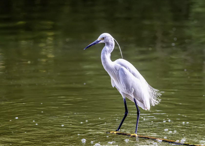 4月15日,攝于南山區(qū)華僑城天鵝堡附近。這是深圳拍鷺鳥的其中一個好去處。一只白鷺站在水面上。徐捷攝