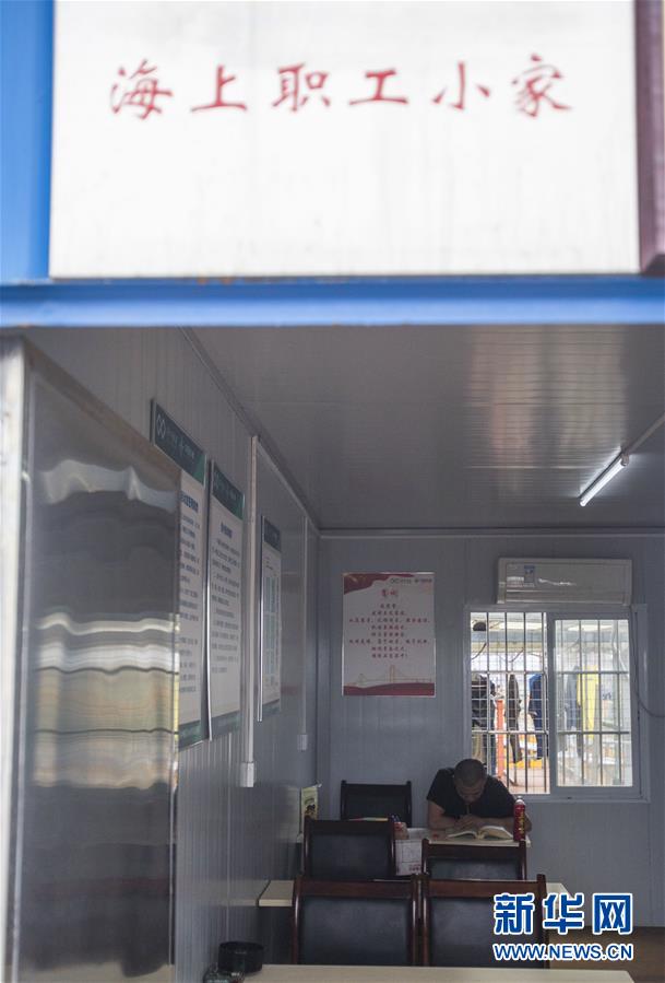 盡管工人生活區(qū)建在海上,但是生活設(shè)施一應(yīng)俱全。中交二航局每日專門拉運淡水與新鮮食材到生活區(qū),并設(shè)置了圖書室與電影區(qū)等配套設(shè)施,為生活區(qū)的工人們做好后勤保障,助力施工建設(shè)。