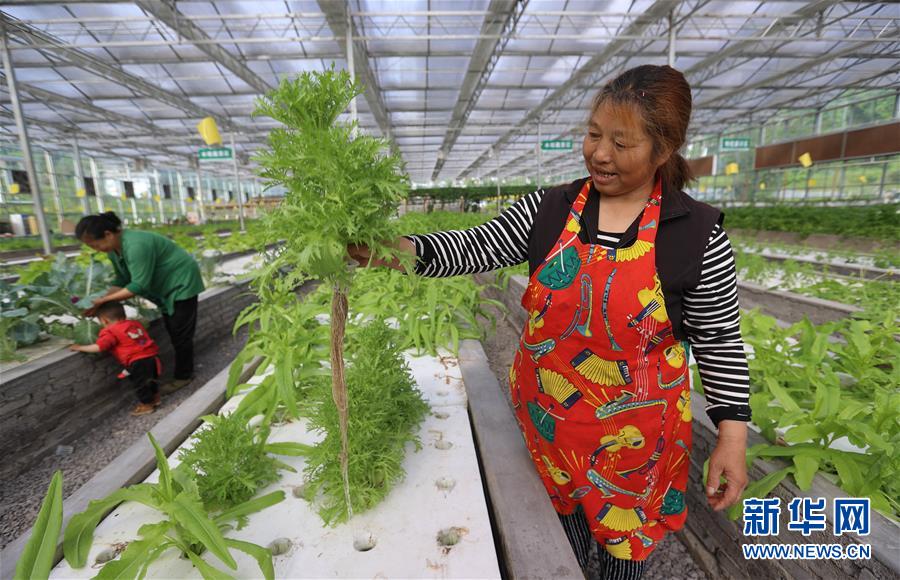 4月29日,珙縣三合村的村民在現(xiàn)代農業(yè)產業(yè)示范園區(qū)收獲無土栽培的蔬菜苦菊。新華社記者江宏景攝
