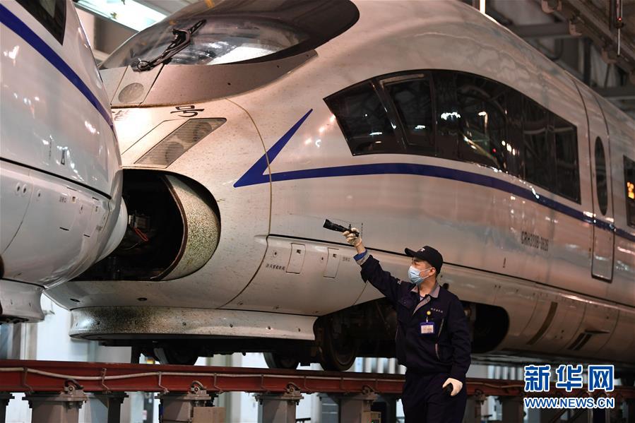4月29日夜,合肥南動(dòng)車運(yùn)用所的工作人員對(duì)動(dòng)車組進(jìn)行檢修。每當(dāng)夜深人靜的時(shí)候,合肥南動(dòng)車運(yùn)用所卻燈火通明,“動(dòng)車安全守護(hù)者”們堅(jiān)守崗位,對(duì)動(dòng)車組進(jìn)行全面細(xì)致檢修。新華社記者 劉軍喜 攝
