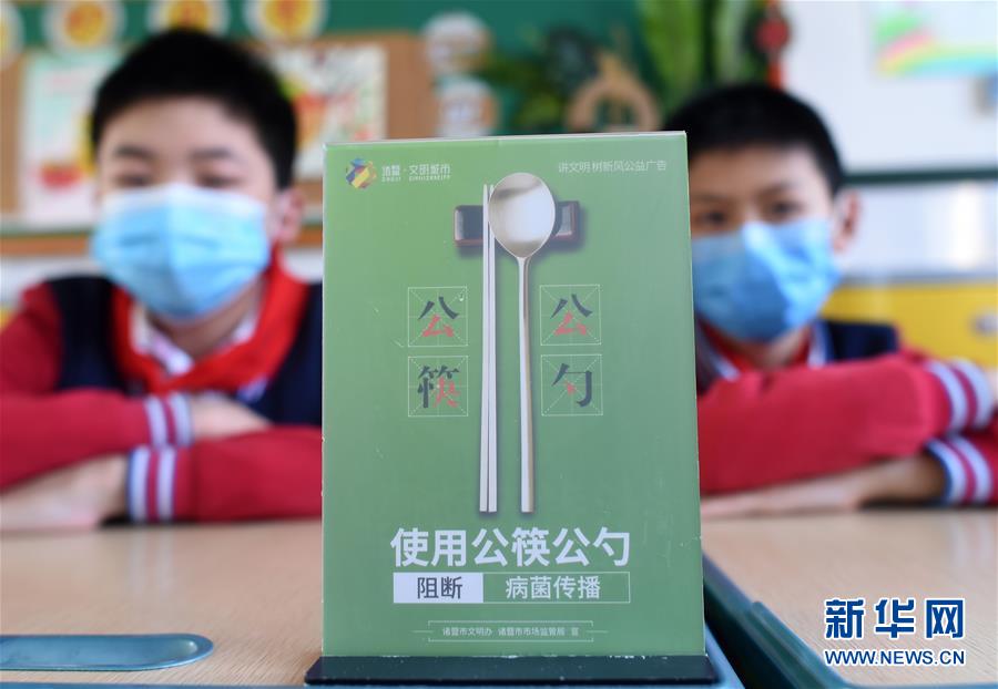 4月30日,諸暨市暨陽小學(xué)五年級4班學(xué)生在主題班會中。當(dāng)日,浙江省諸暨市暨陽小學(xué)五年級4班開展“公筷公勺新家風(fēng)”主題班會活動,通過海報設(shè)計、情景劇表演等強化孩子們使用公筷公勺的意識,倡導(dǎo)文明用餐。新華社記者 韓傳號 攝