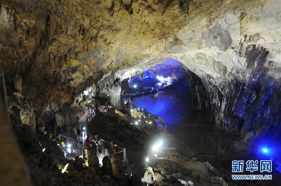 4月30日,游客在貴州織金洞景區(qū)游覽?!拔逡弧毙¢L假將至,位于貴州省織金縣的世界地質(zhì)公園織金洞景區(qū)迎來各地游客。據(jù)了解,該景區(qū)實行分時段預約和人數(shù)限流措施,確保游客安全有序游覽。新華社記者 李黔渝 攝